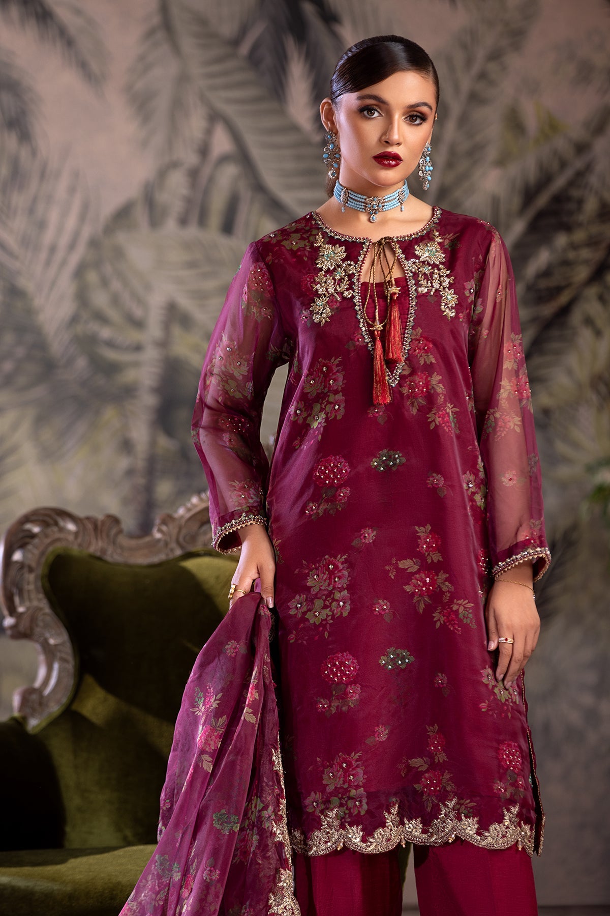 3-PC Embroidered Organza Shirt with Embroidered Dupatta and Trouser CMA-4-070