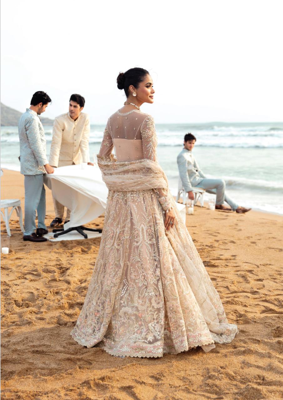 A TRUE MASTERPIECE OF REFINEMENT AND ELEGANCE. THIS PEACH PINK TRADITIONAL PESHWAS MARVELS WITH ITS INTRICATE, SUBTLE MULTI-COLOR DETAILING AND SEQUIN-EMBELLISHED NET, CAPTURING EVERY GAZE WITH ITS LUMINOUS CHARM. PAIRED WITH RAW SILK PANTS AND CROWNED BY A RESPLENDENT NET DUPATTA CASCADING IN OPULENT SPLENDOR, THIS ENSEMBLE ENSURES THAT EVERY DETAIL EXUDES SOPHISTICATION AND GRACE.
