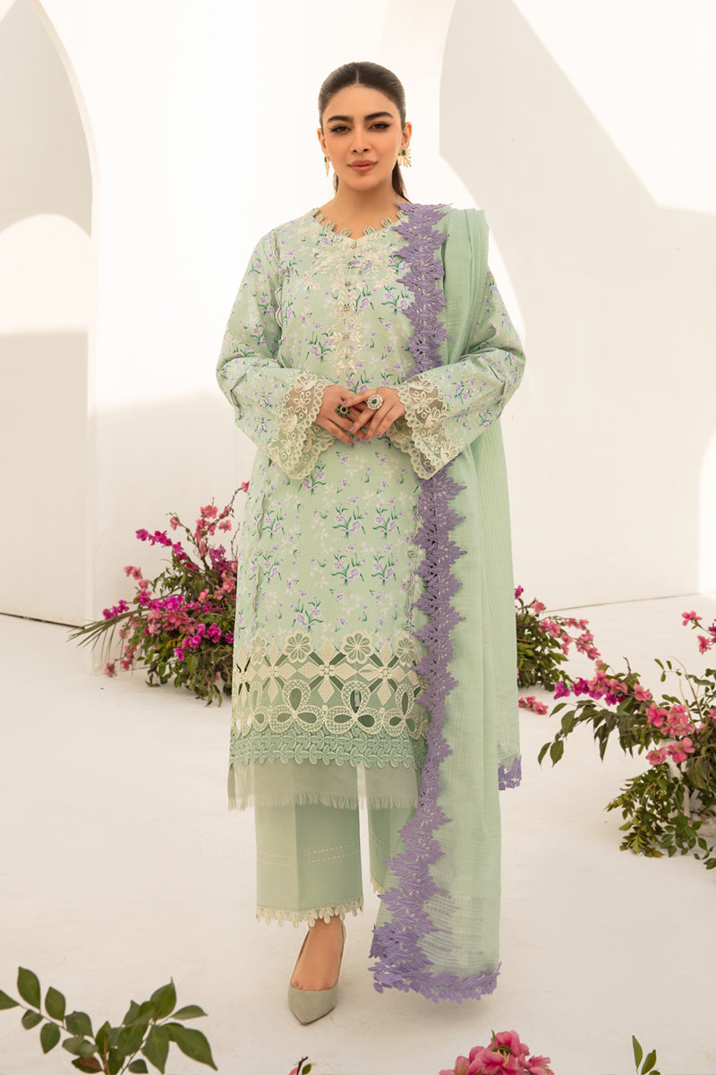 Embroidered shirt trouser lace on dyed organza 40 inch