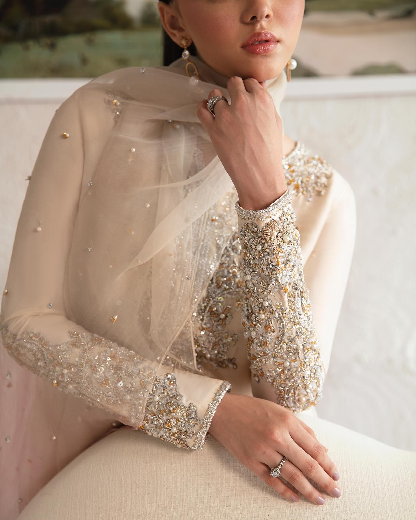 Please note: From time to time certain elements are shown by brands for photography purposes only and these items are not provided by the designers in the end retail product - as such there can be a possibility of a variation to the cut, length, and style and dress embellishments. We are not responsible for any changes and variations that the designers make from the marketing photo to the end product supplied.