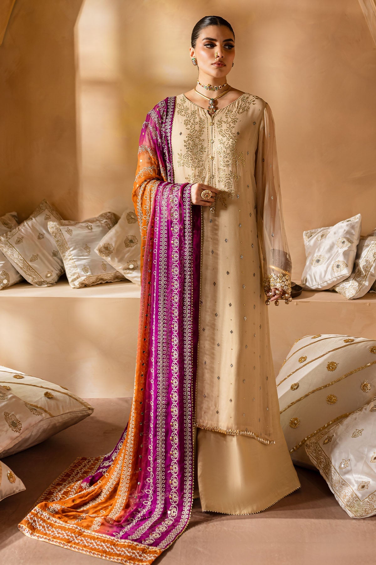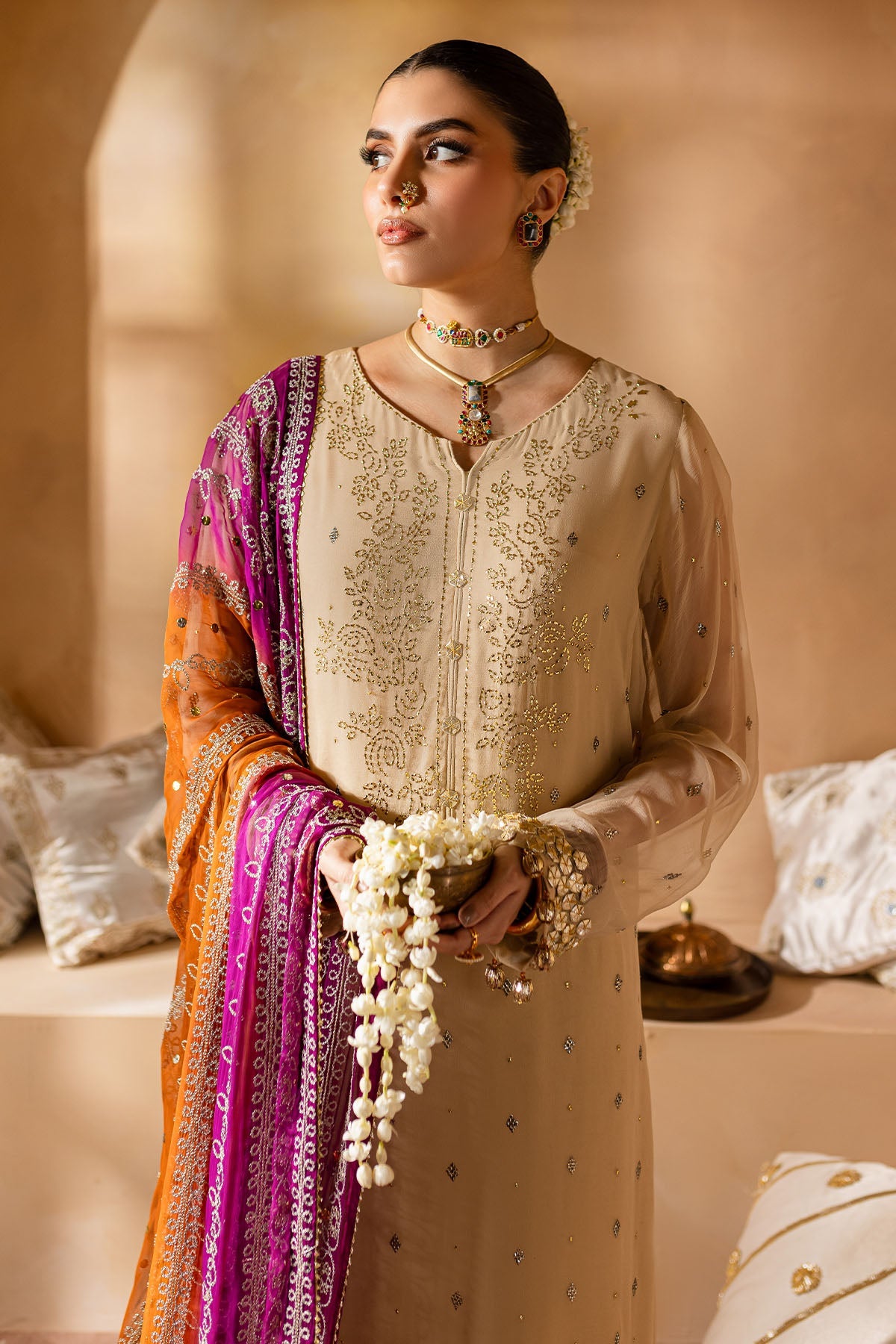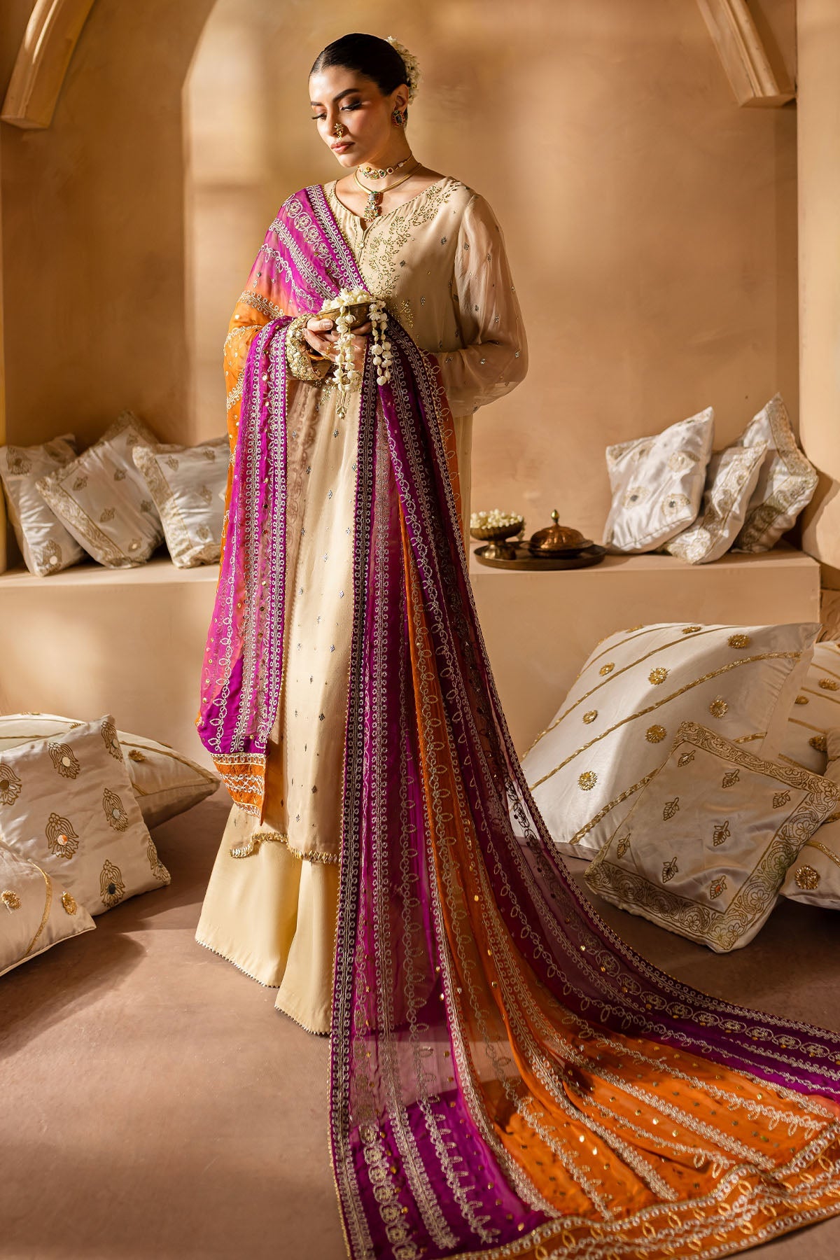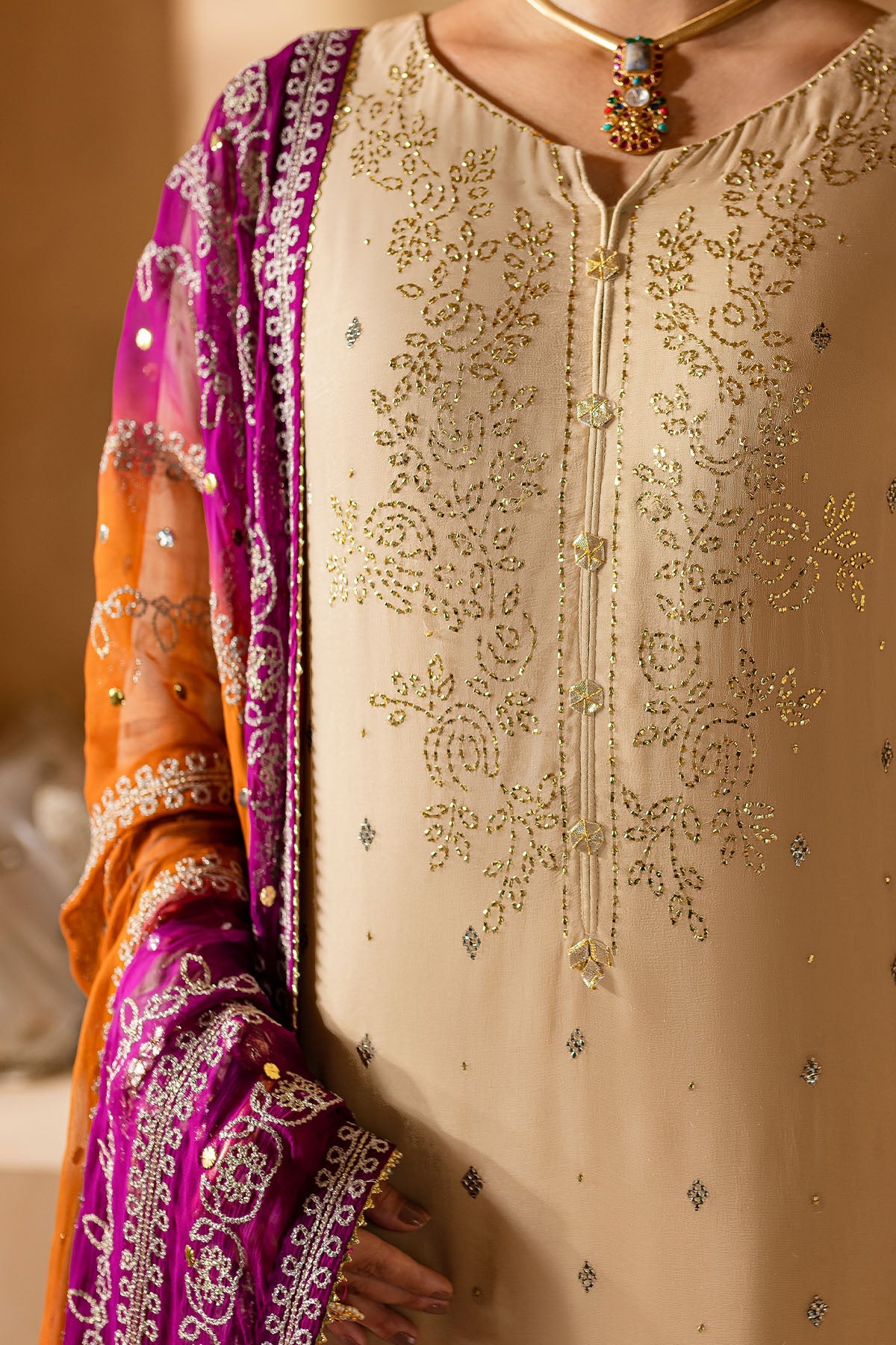 - Dupatta will be stitched and accessorised as per image