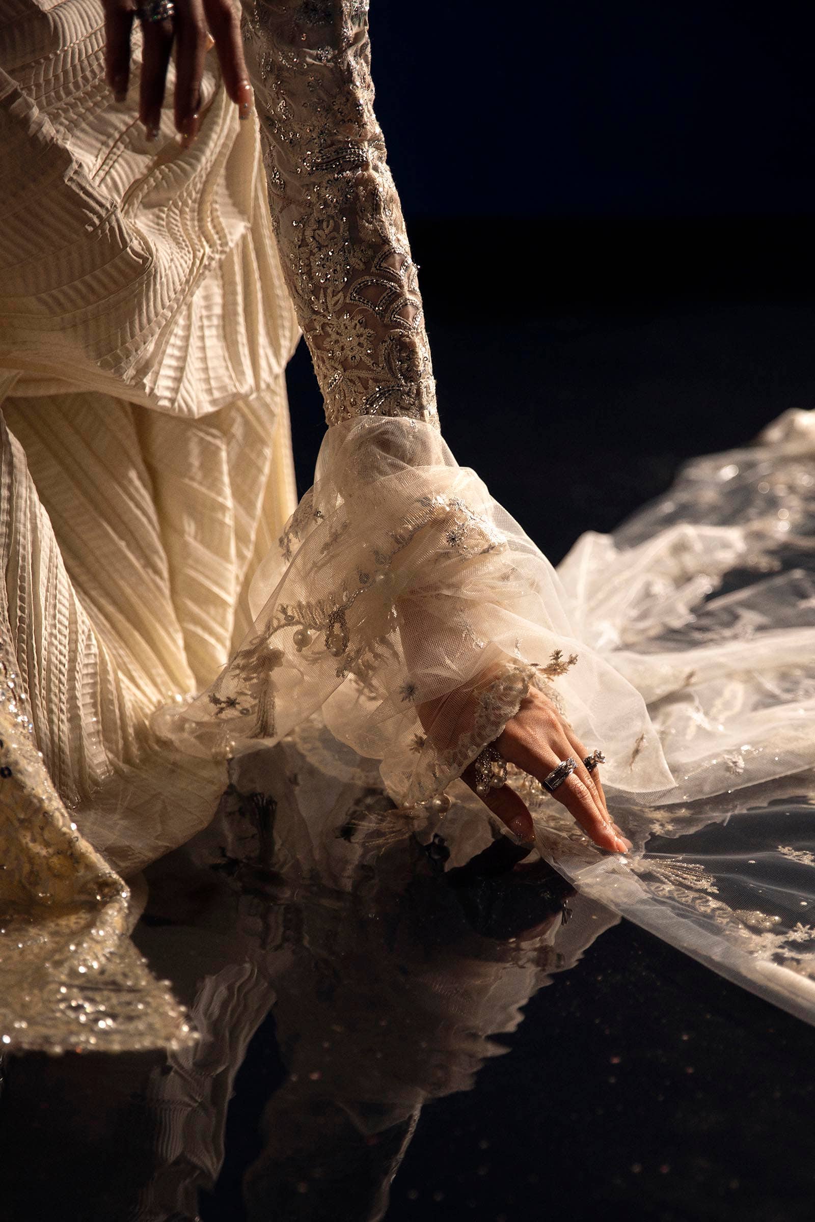 Please note: From time to time certain elements are shown by brands for photography purposes only and these items are not provided by the designers in the end retail product - as such there can be a possibility of a variation to the cut, length, and style and dress embellishments.