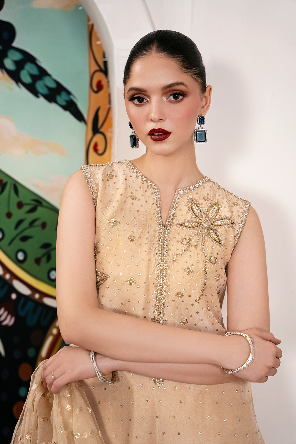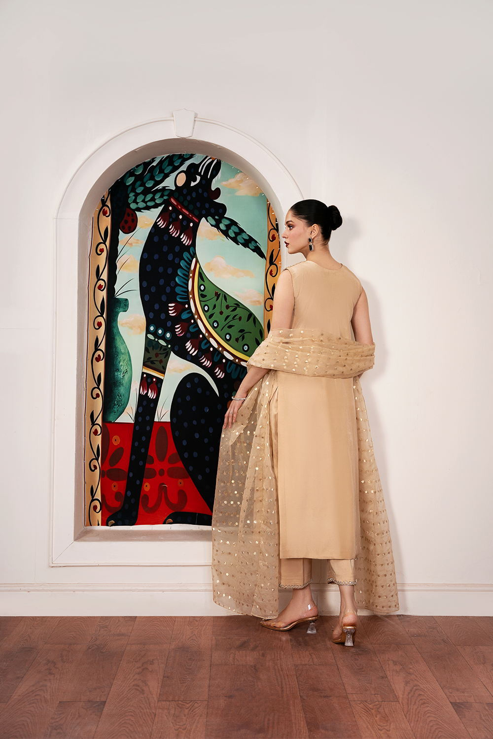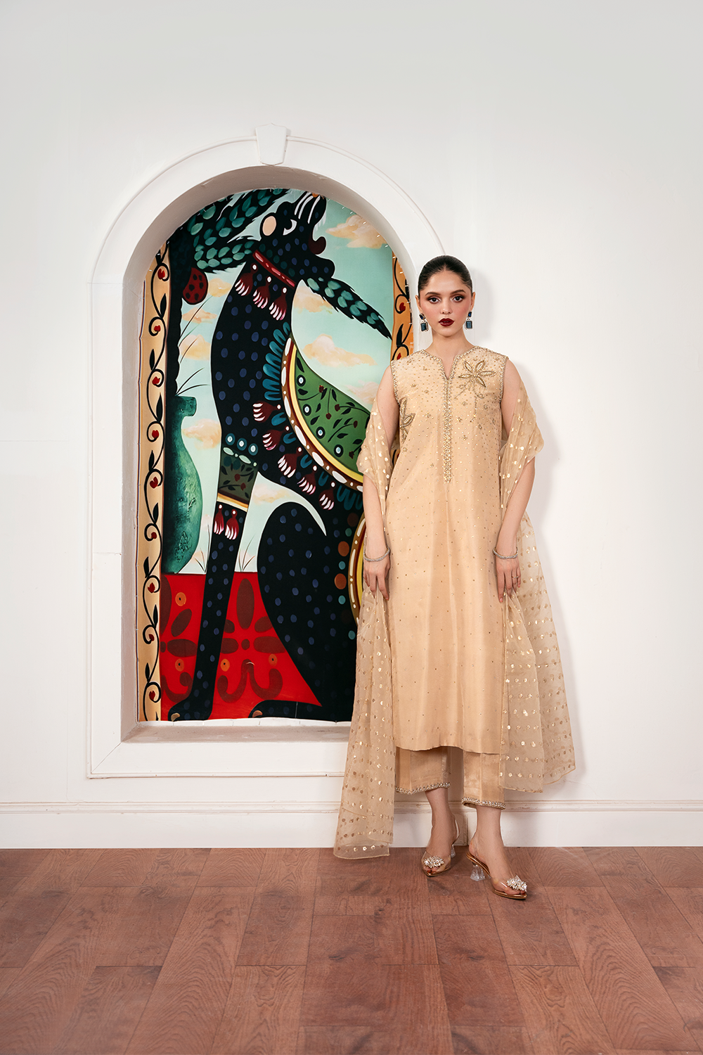 - Sleeve Less Shirt, Trouser & Dupatta.