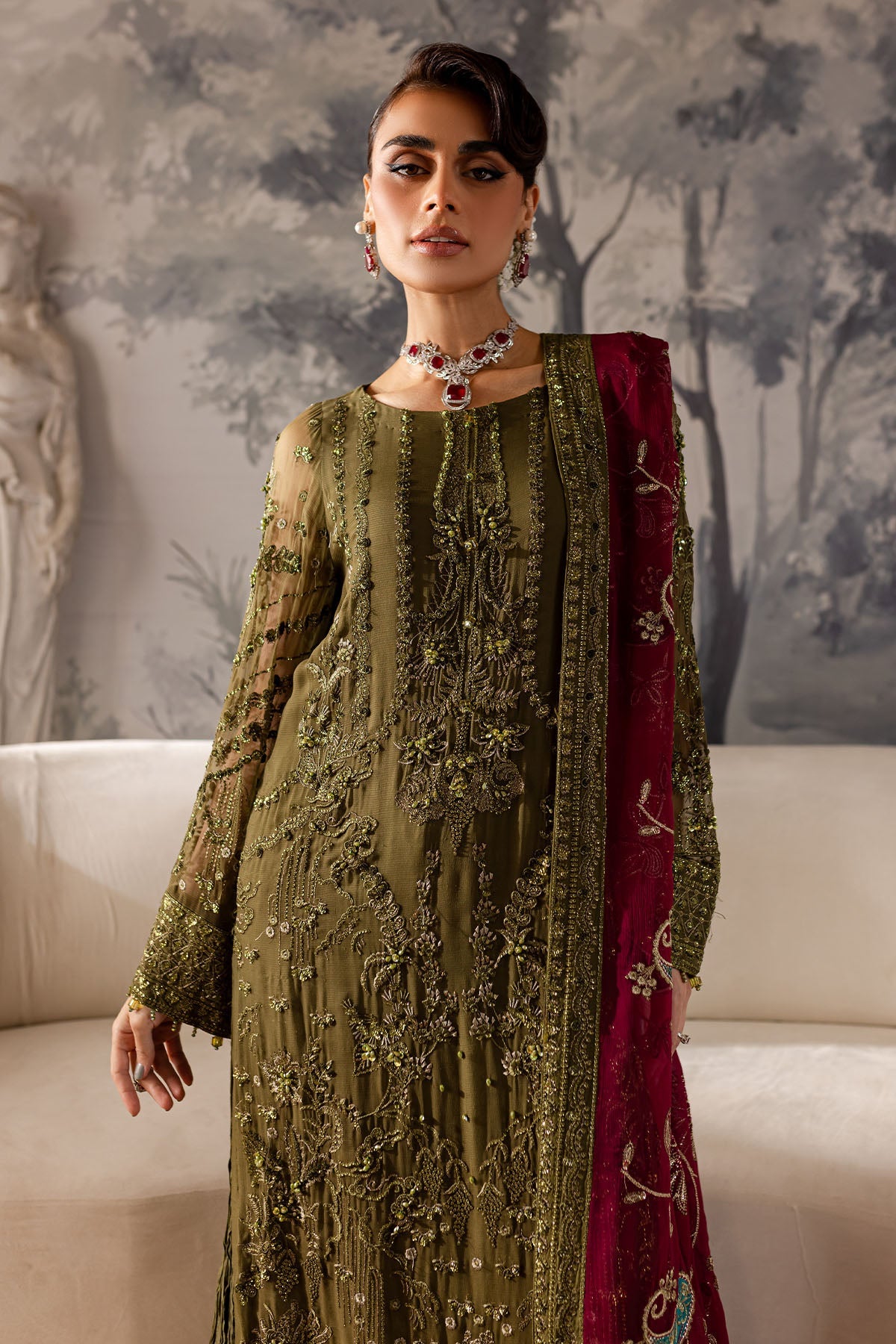- Embroidered Chiffon Contrast Dupatta